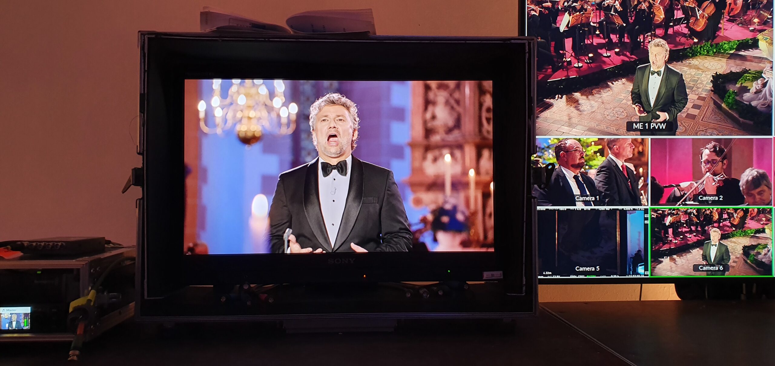 Für die Teleprompter war natürlich auch das Team der PrompterBoyz zuständig: Neben der deutschen Fassung für das ZDF wurde 2022 auch eine internationale Version auf Englisch produziert. Sie gaben die Texte auf zwei Monitoren vor der ersten Reihe und auf einem 19-Zoll-Teleprompter auf der zentralen Kamera aus. Auch auf die Steadicam wurde das Skript mittels „Wireless Prompting“ übertragen. Damit der Empfang während der zahlreichen Moderationen im gesamten Kirchenschiff gewährleistet war, installierte Teleprompter-Operator Leander Goretzky mehrere WLAN-Accesspoints.